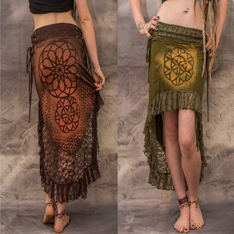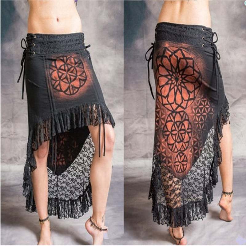 Step out in style and make a statement with our Digitally Printed Lace Stitching Irregular Skirt. Elevate your wardrobe today!