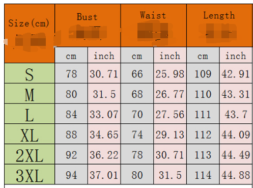 Here's a size chart showing U.S. women's dress and clothing sizes from Small (S) to 5XL, including numerical sizes, bust, waist, and hip measurements for reference: