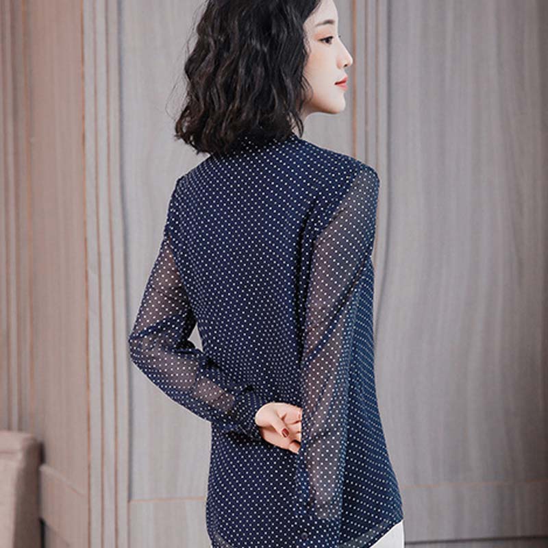Available in a stunning blue hue, this shirt features a fashionable stand collar with a charming butterfly bow detail, adding a touch of sophistication to your look. The long sleeves offer versatility for transition through the seasons, ensuring you stay stylish no matter the occasion.